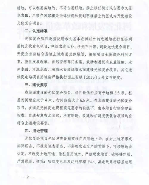 此外,文件強調,禁止以任何方式占用永久基本農田,嚴禁再國家相關法律法規和規劃明確禁止的區域內開發建設光伏復合項目。