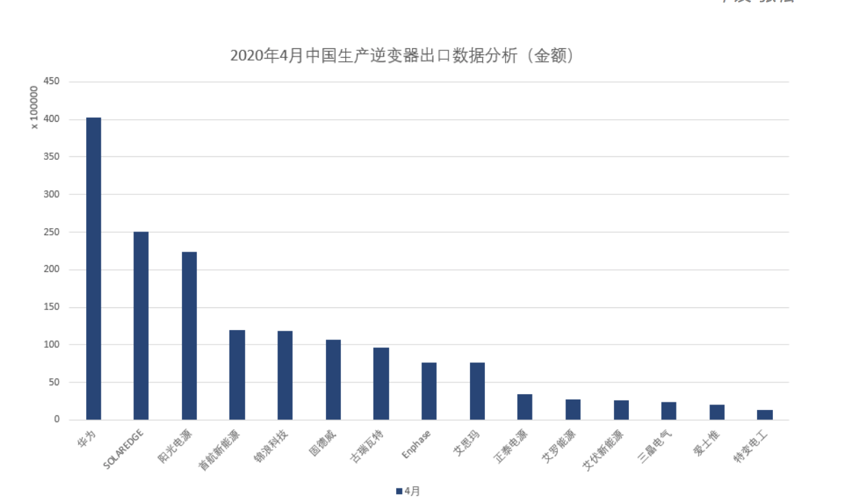 從財務(wù)數(shù)據(jù)上,也體現(xiàn)著首航新能源的穩(wěn)步前進(jìn)。2020年1-5月份,公司實現(xiàn)營收3.7億,較去年同期增長了30%。最新統(tǒng)計的2020年4月中國逆變器出口數(shù)據(jù)顯示,首航新能源出口額已躍居中國企業(yè)前三!