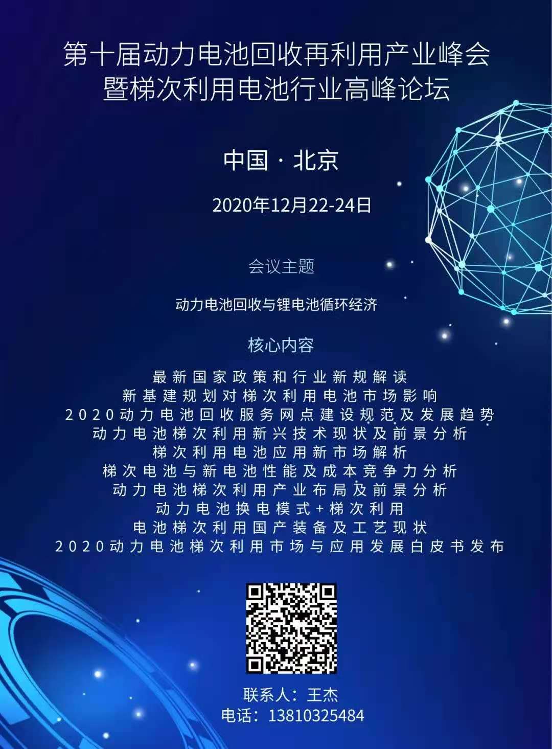 為了促進電池回收行業發展,引導廢舊動力電池回收網絡體系建立,探討新基建規劃帶來的新市場機遇,提高動力電池全生命周期價值,探索新型商業模式及盈利點。由中國電池聯盟、中國綠色供應鏈聯盟電池專委會、中國電子節能技術協會電池專委會聯合舉辦的“第十屆動力電池回收再利用產業峰會暨梯次利用電池市場發展論壇”,即將在北京召開。