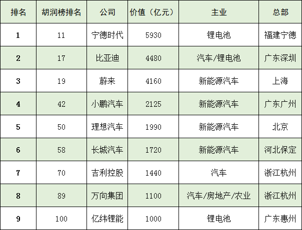 最耀眼的明星來自新能源領(lǐng)域。連胡潤(rùn)都表示:“今年是電動(dòng)汽車第一次排名這么突出、這么靠前,中國(guó)電動(dòng)汽車企業(yè)明顯引領(lǐng)這個(gè)全球級(jí)的新興產(chǎn)業(yè)。”