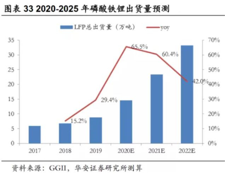 新興市場(chǎng)疊加替換市場(chǎng),預(yù)測(cè)2020-2022年,磷酸鐵鋰三年復(fù)合增速高達(dá)56%。