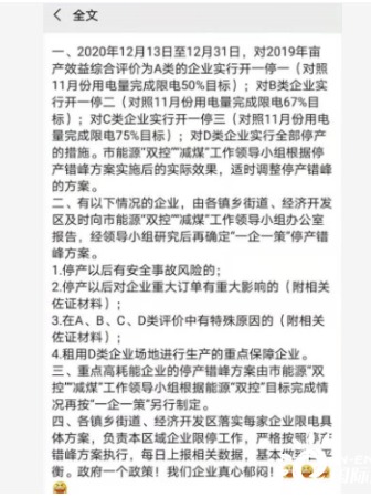 近日,浙江地區眾多工廠反應,收到了緊急通知,要求即日起至12月31日,所有加工廠全部停止生產。政府機關也收到通知,要求氣溫在3度以上不得開空調。