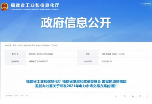 福建省工業和信息化廳 福建省發展和改革委員會 國家能源局福建監管辦公室關于印發2021年電力市場交易方案的通知
