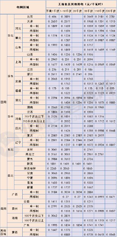 從電價(jià)構(gòu)成上看,新一輪電價(jià)構(gòu)成更加合理,部分地區(qū)取消大工業(yè)目錄電價(jià),有專家稱這是解決電價(jià)分類交叉補(bǔ)貼問題的有效嘗試。在新政策下,26個(gè)地區(qū)中已有12個(gè)將大工業(yè)、一般工商業(yè)合并為“工商業(yè)及其他用電”,并作單一制、兩部制區(qū)分。另外需要注意,上海單獨(dú)制定了一般工商業(yè)兩部制價(jià)格。