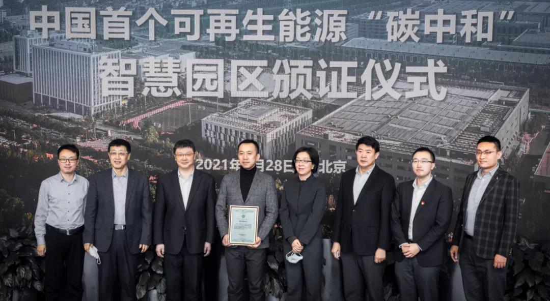 圖片↑ 金風科技亦莊智慧園區獲中國首個可再生能源“碳中和”智慧園區認證