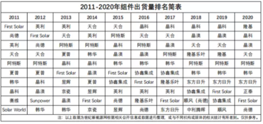 十年,組件市場雖有變化,但是強者恒強依舊是主基調。隨著2021年的起始,光伏利好信息頻出,未來,中國組件企業十席能夠占據幾席,隆基是否王冠依舊,日升能否業績翻臉,天合又將演繹出怎樣的精彩……這些都將是精彩的看點。
