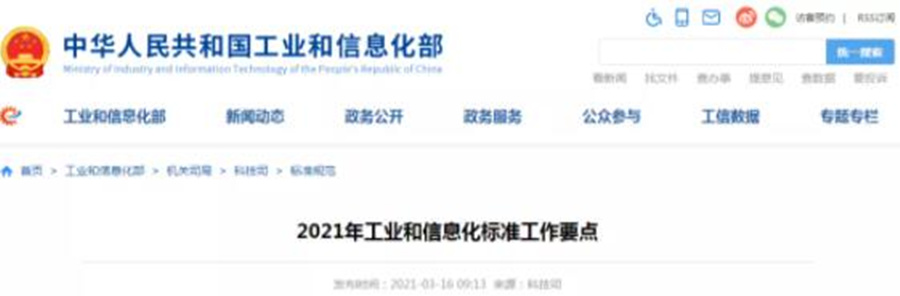 國際能源網/儲能頭條獲悉,3月16日,工業和信息化部發布了《2021年工業和信息化標準工作要點》(以下簡稱《工作要點》)。