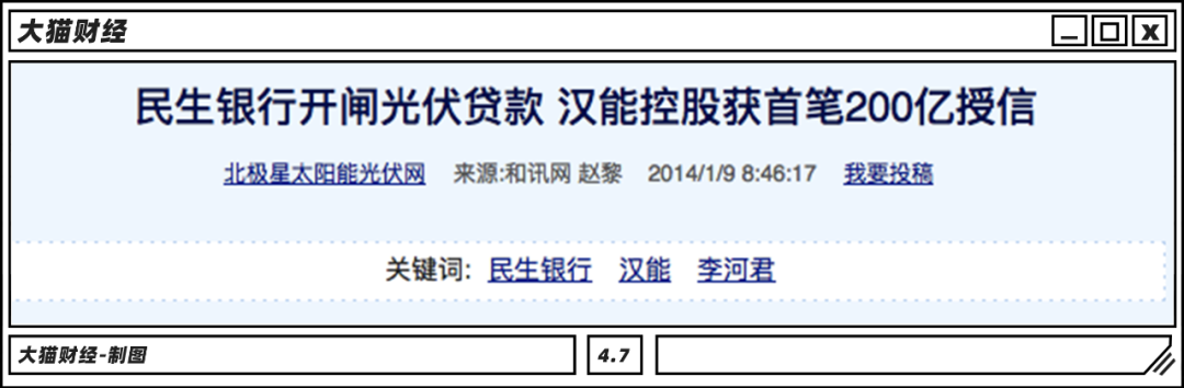 那時候,李河君與民生銀行董事長董文標的關系也不錯,漢能又拿到了200億的授信。