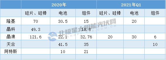 注:因天合光能財報中未公布硅片2021產(chǎn)能,故上表未體現(xiàn)