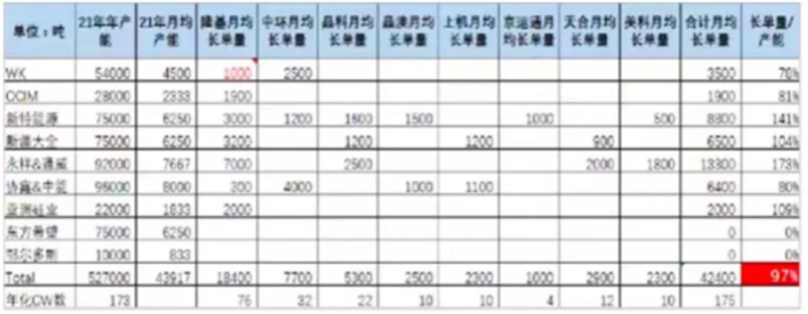 Solarwit通過統計后發現,全行業2021年僅有的52.7萬噸硅料產出,已被下游企業通過長約鎖定的方式鎖定掉了97%。2021年,國內大約只有5萬噸新增硅料產量,而這些產能一經釋放也會很快被鎖定,拿不到硅料的企業或許只能“餓死”。