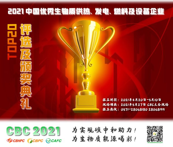 2,甄選階段:CBC2021中國(國際)生物質(zhì)能源大會組委會匯同行業(yè)專家,根據(jù)企業(yè)提交的材料,經(jīng)過綜合評判共同甄選出20家優(yōu)秀供熱、發(fā)電、燃料及設(shè)備企業(yè)。