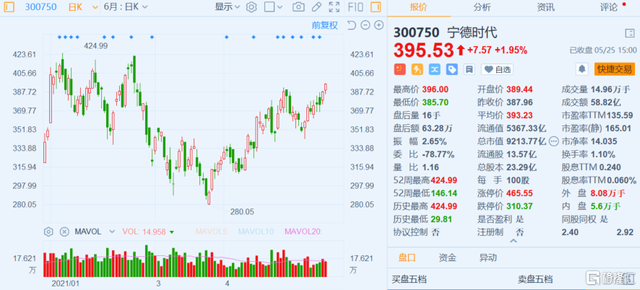 寧德時(shí)代董事長曾毓群對外透露,寧德時(shí)代將于2021年7月前后發(fā)布鈉電池。5月24日,寧德時(shí)代股價(jià)上漲3.3%,今天繼續(xù)收漲2%。