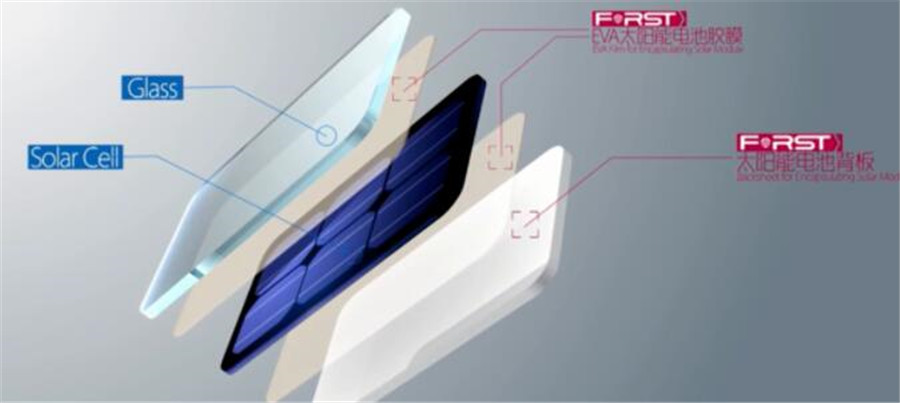 光伏組件主要分為五層,分別為光伏玻璃、EVA太陽電池膠膜、電池片、EVA太陽電池膠膜、太陽能電池背板或光伏玻璃。在保證組件密封性和壽命的前提下,將組件所產生電流導出,最終變成家庭用電。
