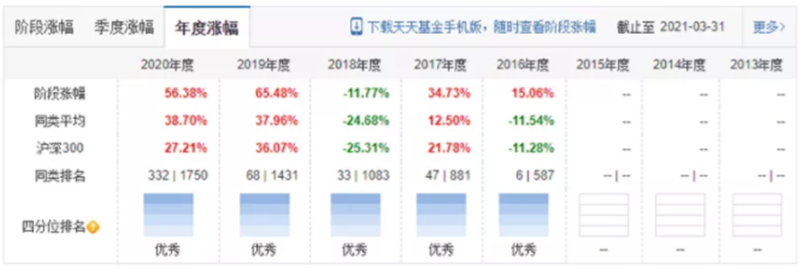 雖然成立的時間點比較尷尬,但在2016年,周應(yīng)波仍然取得了15.06%的正收益,成立至今(截止到2021年6月9日)基金獲得了323.98%的累計收益,在同期同類基金排名中位居第三,僅次于趙蓓的“工銀前沿醫(yī)療”和蕭楠的“易方達消費行業(yè)”。出色的業(yè)績使基金規(guī)模從成立之初的2000多萬元增長到如今的214億元。