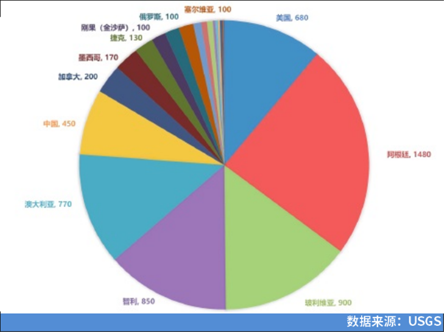 自然資源方面,美國也并無優勢,雖然根據美國地質勘探局USGS的數據(圖2),全球探明鋰資源約6200萬噸,美國儲量約680萬噸,占比11%,位居世界第五,排在阿根廷、玻利維亞、智利、澳大利亞之后。但可開采儲量方面,美國就非常有限了,鹽湖鹵水型鋰資源主要分布在南美鋰三角——阿根廷、智利、玻利維亞以及中國,固態鋰輝石資源主要分布在澳大利亞。