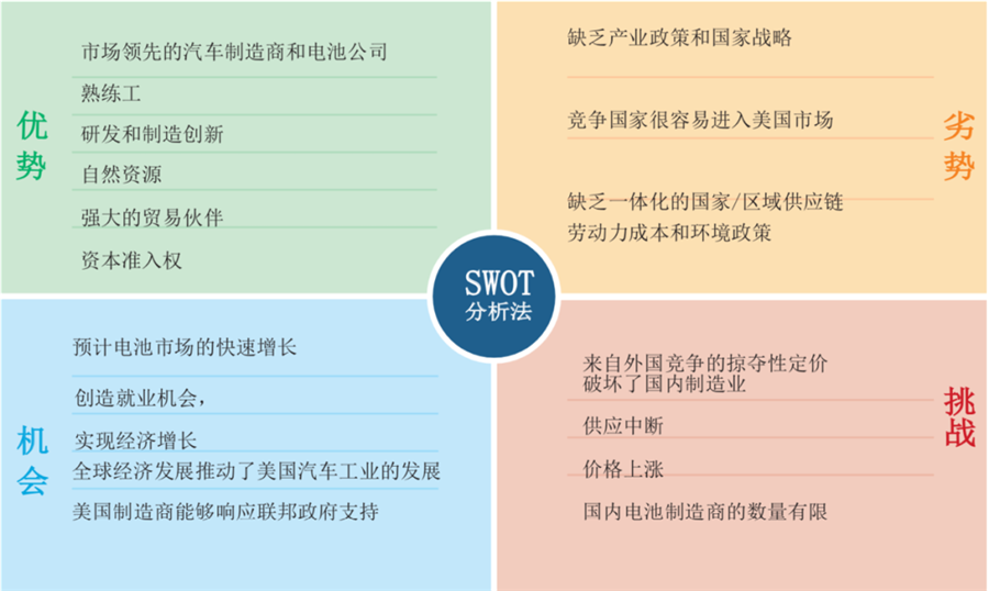 這份國家藍圖當中,FCAB對美國鋰電池產業的現狀進行了SWOT分析(見圖1),為什么財經十一人認為這份藍圖的估計偏樂觀,主要就是這份SWOT分析當中,優勢(STRENGTHS)當中的很多要素其實并不成立。