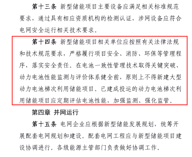 國(guó)家能源局對(duì)動(dòng)力電池梯次利用儲(chǔ)能項(xiàng)目風(fēng)口收緊,具備一定的前提條件?!豆芾硪?guī)范》征求意見(jiàn)稿中也提到,在電池一致性管理技術(shù)取得關(guān)鍵突破、動(dòng)力電池性能監(jiān)測(cè)與評(píng)價(jià)體系健全前,原則上不得新建大型動(dòng)力電池梯次利用儲(chǔ)能項(xiàng)目。對(duì)于已經(jīng)建成投運(yùn)的動(dòng)力電池梯次利用儲(chǔ)能項(xiàng)目,應(yīng)該定期評(píng)估電池性能,加強(qiáng)監(jiān)測(cè)、強(qiáng)化監(jiān)管。