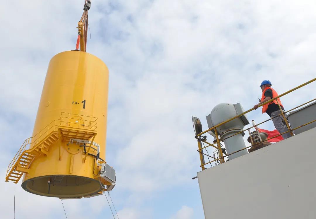 風(fēng)場首臺F1機(jī)位吊裝恰逢全年水文狀況最惡劣的大潮汛,海灣新能與金風(fēng)科技憑借多年海上風(fēng)電開發(fā)經(jīng)驗和領(lǐng)先技術(shù),攜手克服了施工現(xiàn)場水流大、流速快等施工難點,精準(zhǔn)鎖定作業(yè)窗口期,與各單位制定周密的施工計劃,安全、高效地確保項目建設(shè)如期完成。