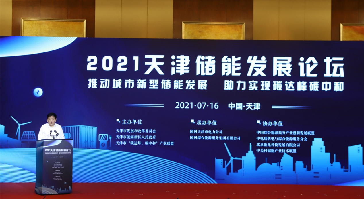 7月16日,以“推動城市新型儲能發展,助力實現碳達峰碳中和”為主題的2021天津儲能發展論壇在天津成功舉辦。論壇由天津市發展和改革委員會、天津市濱海新區人民政府、天津市“碳達峰、碳中和”產業聯盟主辦,由國網天津市電力公司、國網綜合能源服務集團有限公司承辦,由中國綜合能源服務產業創新發展聯盟、中電聯售電與綜合能源服務分會、北京能見科技發展有限公司、中關村儲能產業技術聯盟協辦。來自政府、科研院所、電網企業、儲能企業、新能源企業的300余名參會嘉賓齊聚一堂,圍繞儲能產業進行深入探討,為促進行業的健康快速發展建言獻策、凝聚智慧。