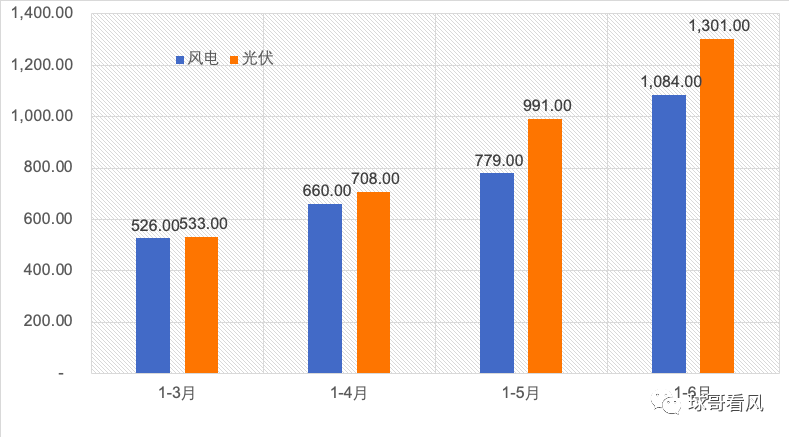 從1-3月、1-4月、1-5月和1-6月的數據來看,無論是風電和光伏的新增規模一直保持2020年同期增加290萬千瓦、305萬千瓦、289萬千瓦和452萬千瓦,在對比2020年疫情情況和2021年平價風電不相上下的市場形勢,這個數據充分顯示,平價時代對風電的發展似乎影響不大,從5-6月的規模來看,復蘇跡象明顯。