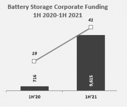 調查表明,電池儲能廠商在2020年上半年達成的19筆交易中籌集了7.16億美元,而今年上半年達成41筆交易籌集近100億美元