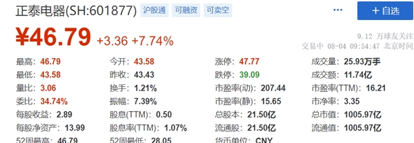 8月4日,正泰電器(601877.SH)股價(jià)大漲,市值抵達(dá)1000億元。這也是第九家在盤(pán)中超越1000億元的光伏類上市公司,此前包括隆基股份、中環(huán)股份、天合光能、晶澳科技、陽(yáng)光電源、福萊特等都分別觸及(過(guò))。