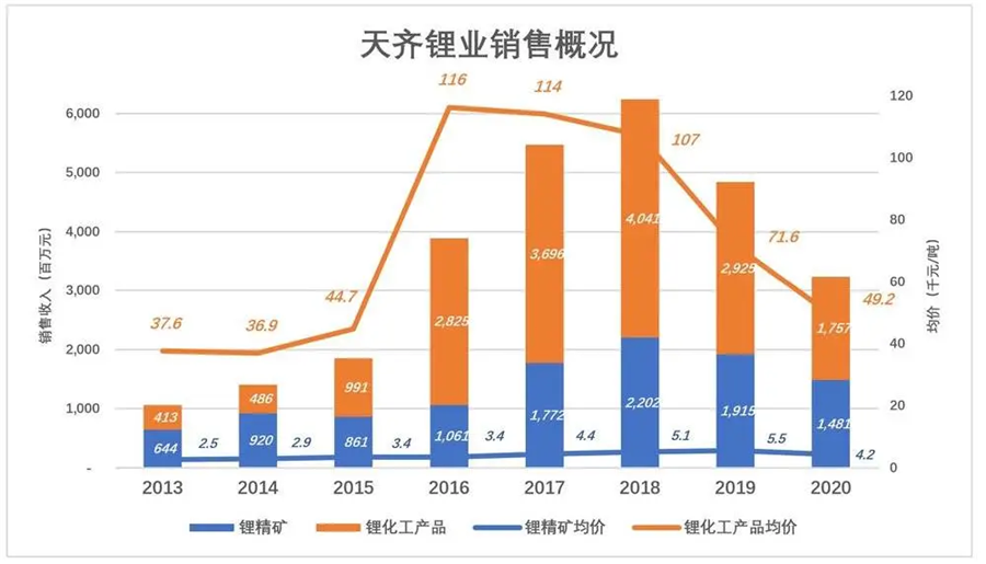 鋰精礦石業(yè)務(wù)本質(zhì)上是賣資源,附加值遠(yuǎn)低于鋰化工產(chǎn)品。從趨勢看,天齊鋰業(yè)“從賣礦石”向“賣產(chǎn)品”的升級還算順利: