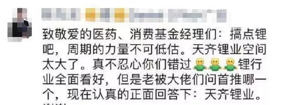 曾有新能源分析師向消費主題的基金經(jīng)理推薦天齊鋰業(yè):