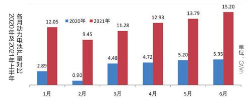 從各月情況來(lái)看,除了2月產(chǎn)量低于1月外,從3月開(kāi)始,動(dòng)力電池產(chǎn)量一直呈現(xiàn)穩(wěn)步上升態(tài)勢(shì)。從銷量看,上半年動(dòng)力電池累計(jì)銷量為58.2GWh,同比增長(zhǎng)173.6%。裝車量方面,上半年動(dòng)力電池累計(jì)裝車量為52.5GWh,同比增長(zhǎng)200.3%。