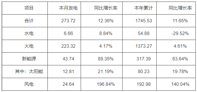 (一)發(fā)電量情況。7月份當月,河南全省發(fā)電量273.72億千瓦時,同比增加12.36%。其中水電6.66億千瓦時,同比增加8.84%;火電223.32億千瓦時,同比增加4.17%;新能源43.74億千瓦時,同比增長89.35%。