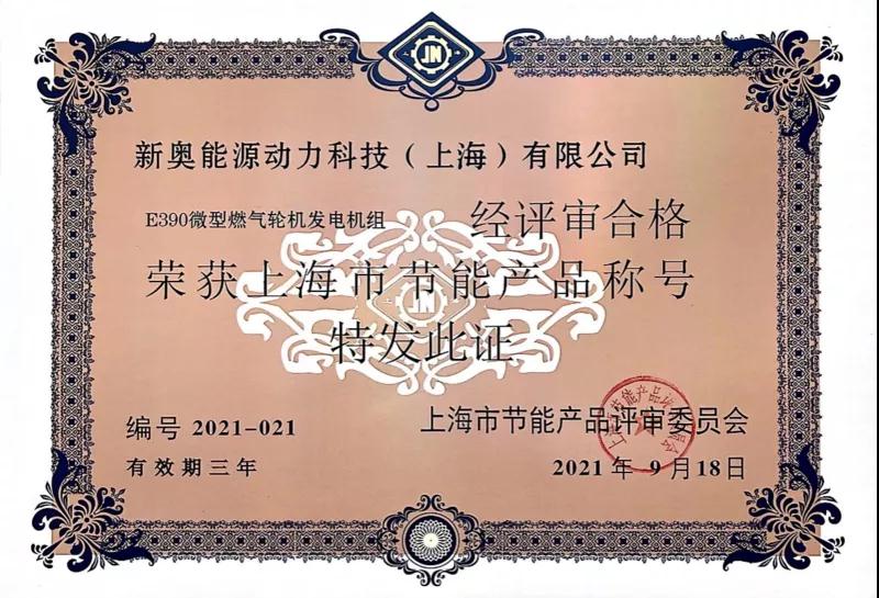 新奧動力E390微型燃?xì)廨啓C發(fā)電機組入選“上海市節(jié)能減排技術(shù)產(chǎn)品推廣目錄”,并于11月11日在上海市節(jié)能產(chǎn)品評審?fù)茝V綠色沙龍活動中獲得“上海市節(jié)能產(chǎn)品稱號“證書。