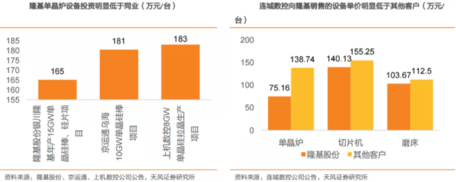 除此之外,也將觸手伸及設備端。例如隆基股份,在設備端參股連城數控,使得成本端具備名明顯的競爭優勢。