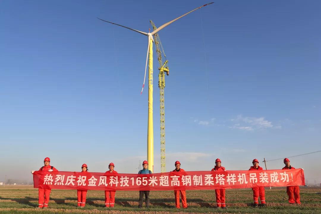 2021年12月3日,金風科技GW165-4.0 165米大直徑超高鋼制柔塔樣機成功吊裝。Double165持續推進金風DoubleX技術更新,再次刷新了國內鋼制柔塔的新高度,成為亞洲第一高柔塔,引領中國風電行業鋼制柔塔高度跨入165米+新時代。該機組融合了金風科技分片式鋼塔及高柔塔技術,為客戶在低風速高切變區域提供更具競爭力的高塔解決方案。