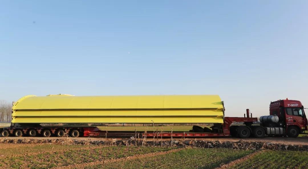 金風大直徑分片式超高鋼塔有兩種運輸方式,針對運輸重量滿足要求的塔架段,采用堆疊運輸方式;針對運輸重量超限的道路與區域,采用單片運輸方式,使塔架運輸更加靈活,不受道路及車輛限制。