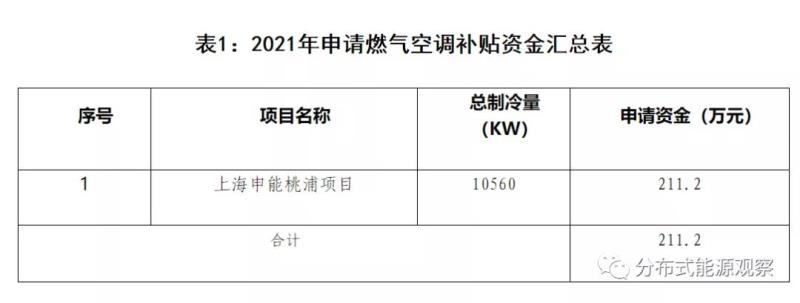 上海市2021年度天然氣分布式供能系統和燃氣空調發展專項資金撥付計劃(草案)公示