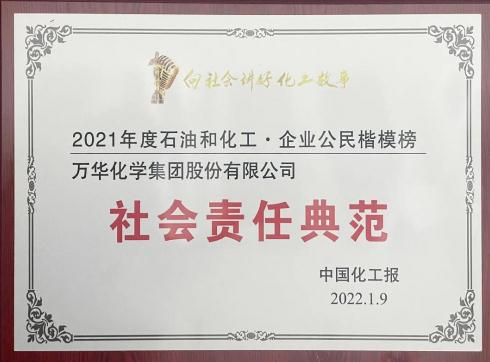 近日,中國化工報發布了2021年度中國石油和化工行業企業公民楷模榜,旨在通過在行業內樹立勇擔社會責任的業內楷模,倡導更多企業加入可持續發展道路。萬華化學榮登2021年度中國石油和化工行業企業公民楷模榜。