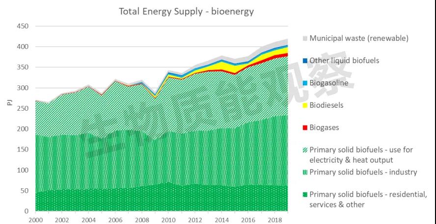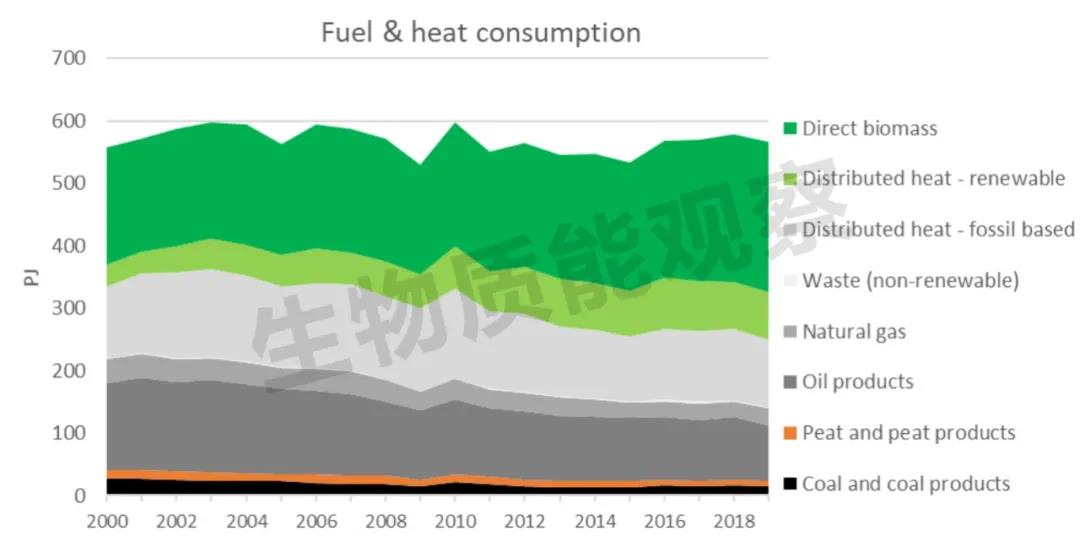 圖2:2000年至2019年芬蘭生物質(zhì)能供應(yīng)量及組成