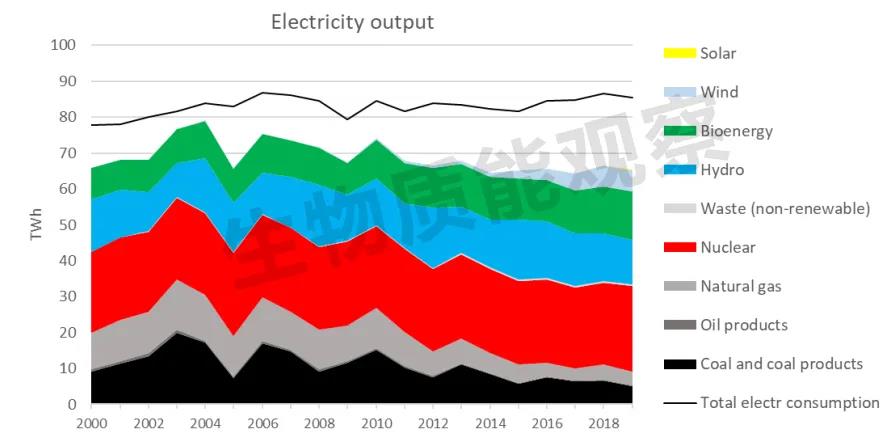 圖3:2000年至2019年芬蘭電力供應(yīng)量及組成