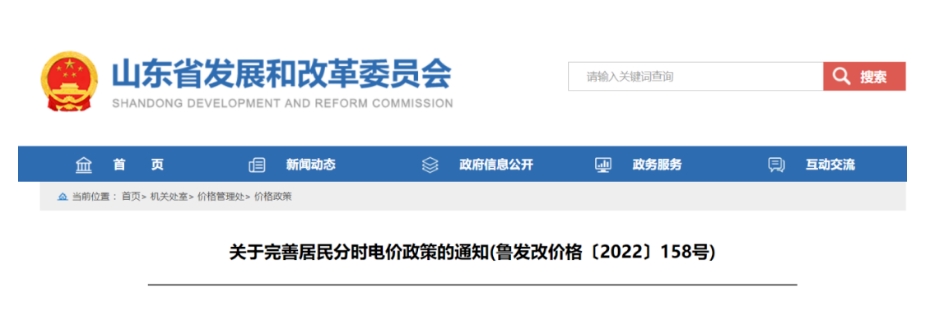 日前山東省發改委發布關于完善居民分時電價政策的通知(魯發改價格〔2022〕158號),通知指出2022年5月1日起執行居民家庭分時電價政策。