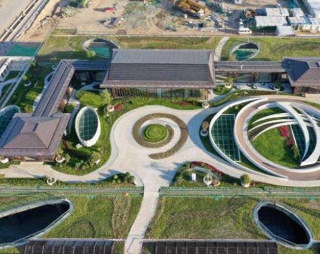 “變電站主體配合三面起坡的設計,將公園地形和變電站融合在一起,站頂打造開放式花園廣場,周邊綠植遍布,形成錯落有致、層次分明的景觀結構。”國網(wǎng)雄安新區(qū)供電公司規(guī)劃設計中心工作人員張海濤介紹。