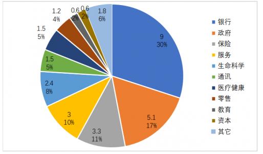 銀行、政府、保險、服務長期以來一直是SAS最大的應用行業。2020年,世界財富500強中前100名有91%是SAS的客戶。2020年,SAS銷售收入達到30億美元,其中:銀行貢獻9億美元占30%,政府貢獻5.1億美元占17%,保險貢獻3.3億美元占11%,服務貢獻3億美元占10%;生命科學在2020年發展迅速貢獻2.4億美元占8%,通訊貢獻1.5億美元占5%,醫療健康貢獻1.5億美元占5%,零售貢獻1.2億美元占4%,教育貢獻0.6億美元占2%,資本貢獻0.6億美元占2%。
