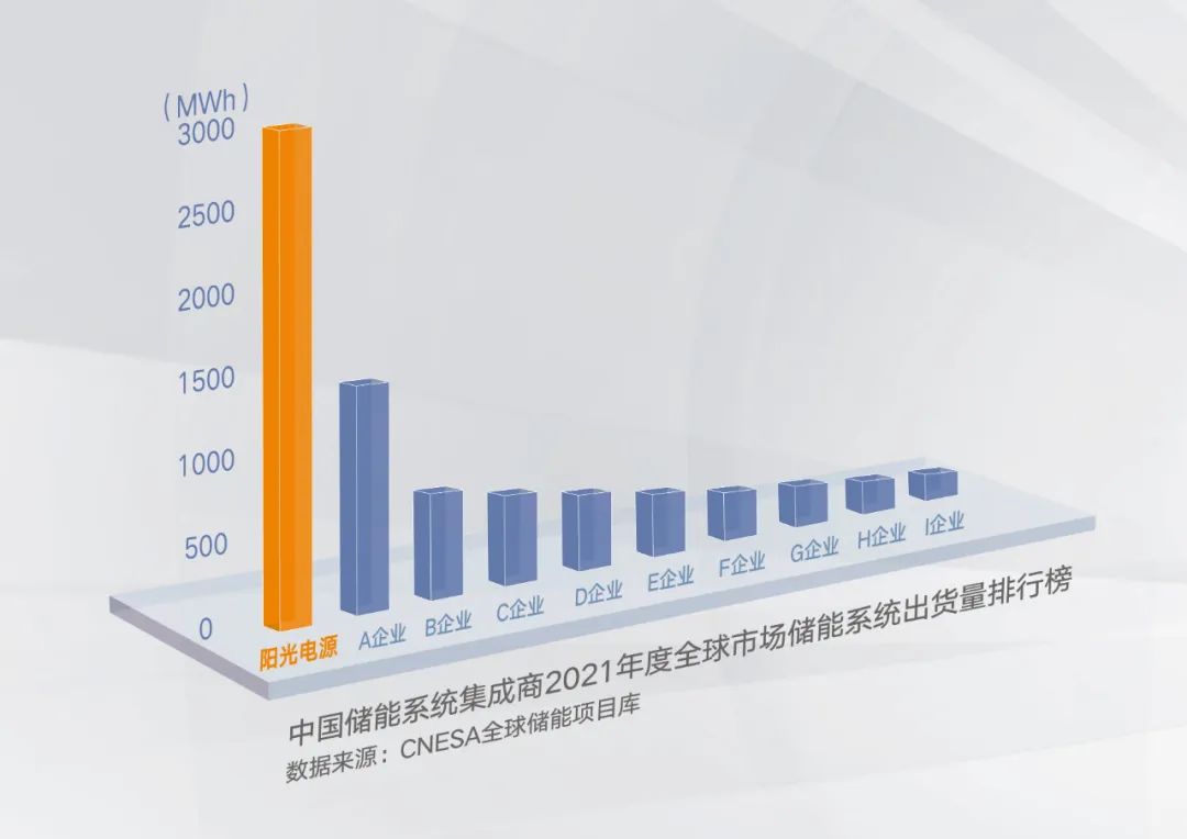 陽光儲能六“年”冠!2021年全球出貨3GWh