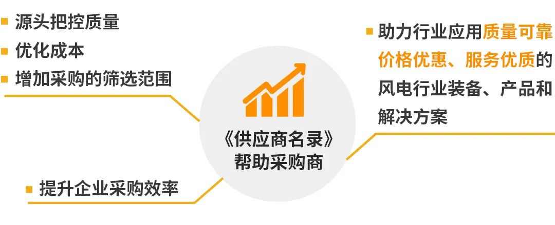 《供應商名錄》將通過線上、線下、會議論壇/展會免費發放、專業人員配送等共發行20000冊,最大化宣傳推薦優秀風電企業的知名度,支持質量優良的產品在市場獲得廣泛的推廣與應用,助力供應商實施品牌戰略,引導各級行政部門、各類能源企事業單位、公安、消防、交通、產業鏈上下游采購單位擇優采購《供應商名錄》所推薦企業的產品與服務。