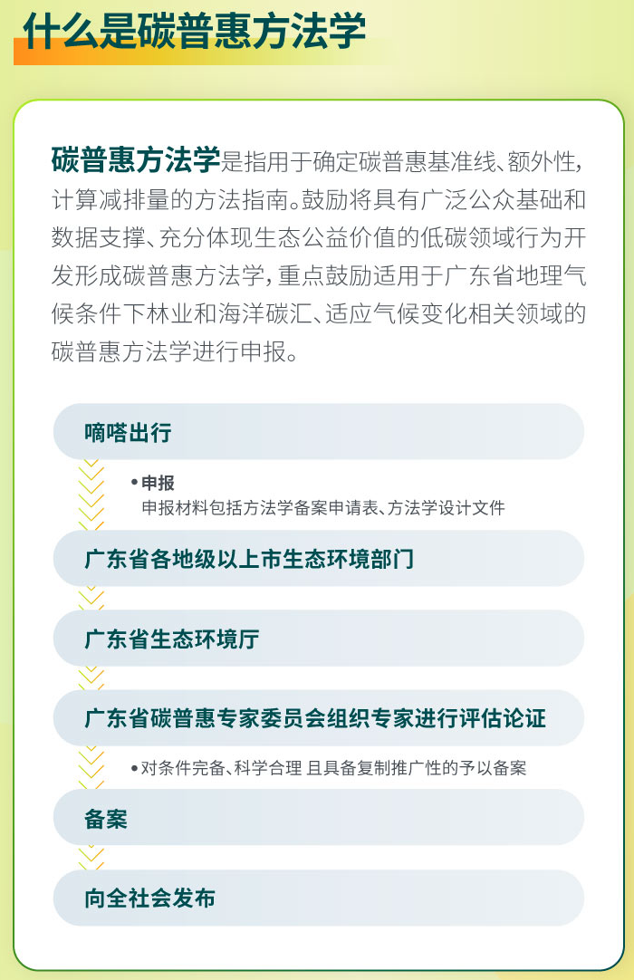 而碳普惠方法學是指用戶確定碳普惠基準線、額外性、計算減排量的方法指南,鼓勵將具有廣泛公眾基礎和數據支撐、充分體現生態公益價值的低碳領域行為開發形成碳普惠方法學。