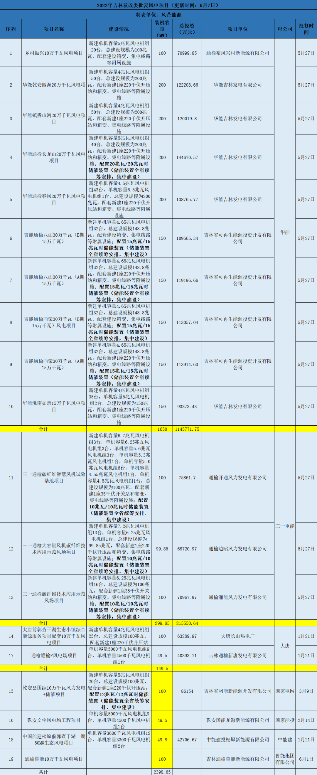 風芒能源據(jù)公開信息不完全統(tǒng)計,今年以來截至目前,吉林省發(fā)改委共核準19個風電項目合計2.398GW。