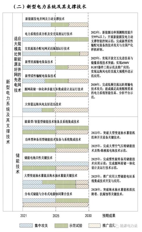4月2日,國(guó)家能源局、科學(xué)技術(shù)部印發(fā)《“十四五”能源領(lǐng)域科技創(chuàng)新規(guī)劃》?!兑?guī)劃》發(fā)布了先進(jìn)可再生能源發(fā)電及綜合利用技術(shù)、新型電力系統(tǒng)及其支撐技術(shù)、能源系統(tǒng)數(shù)字化智能化技術(shù)等5大技術(shù)路線圖。其中在新型電力系統(tǒng)技術(shù)路線圖中,也公布儲(chǔ)能技術(shù)路線圖,“十四五”儲(chǔ)能技術(shù)創(chuàng)新包括: