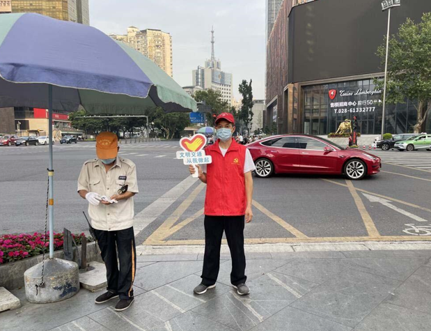 為進一步倡導文明交通行為,提高群眾交通安全意識,自覺遵守交通法律法規,營造文明和諧暢通有序的道路交通環境,成都市錦江區春熙路街道辦事處攜手四川科銳得實業集團有限公司下屬四川通能電力科技有限公司開展為期2個月的文明交通勸導志愿服務活動。在志愿服務活動期間,每日從梨花街50號辦公區抽調2名安保隊員利用個人業余時間參與活動。