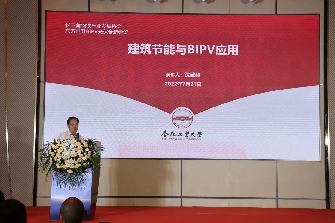 BIPV 千億級(jí)的藍(lán)海市場(chǎng)蘊(yùn)含著無(wú)窮的機(jī)遇,但同時(shí)也需要產(chǎn)業(yè)上下游同心協(xié)力,共創(chuàng)共享,實(shí)現(xiàn)資源互通,優(yōu)勢(shì)互補(bǔ),才能實(shí)現(xiàn)生態(tài)共贏,協(xié)同發(fā)展。此次會(huì)議還特別邀請(qǐng)了合肥工業(yè)大學(xué)沈致和教授、博思格鍍面鋼品市場(chǎng)開(kāi)發(fā)主管朱顯、中電國(guó)際中電官塘環(huán)保發(fā)展部經(jīng)理江曉陽(yáng)及安徽格潤(rùn)綠建副總經(jīng)理瞿春,分別從專家學(xué)者、上游建筑屋面鋼材料、投資人及合作伙伴角度闡述各自看法與觀點(diǎn)。