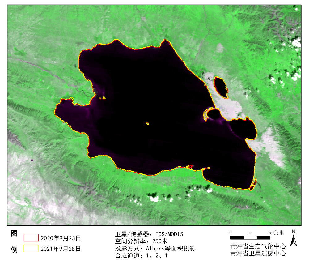 這是2021年9月28日衛星遙感監測到的青海湖水體面積圖。(青海省氣象科學研究所供圖)