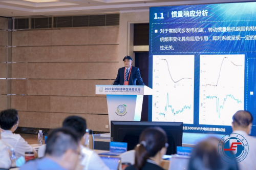 隨后,微控董事長張慶源在報告中,首先進行了新型電力系統、電力調頻、虛擬轉動慣量等簡要分析,提出風電機組短期頻率響應特性、新能源場站快速頻率調節技術需求;